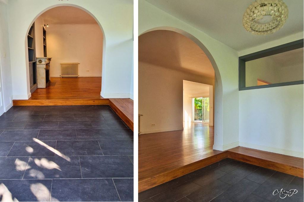 Les beaux volumes et le parquet ancien apportent une touche de charme et de chaleur, créant une atmosphère à la fois contemporaine et accueillante.